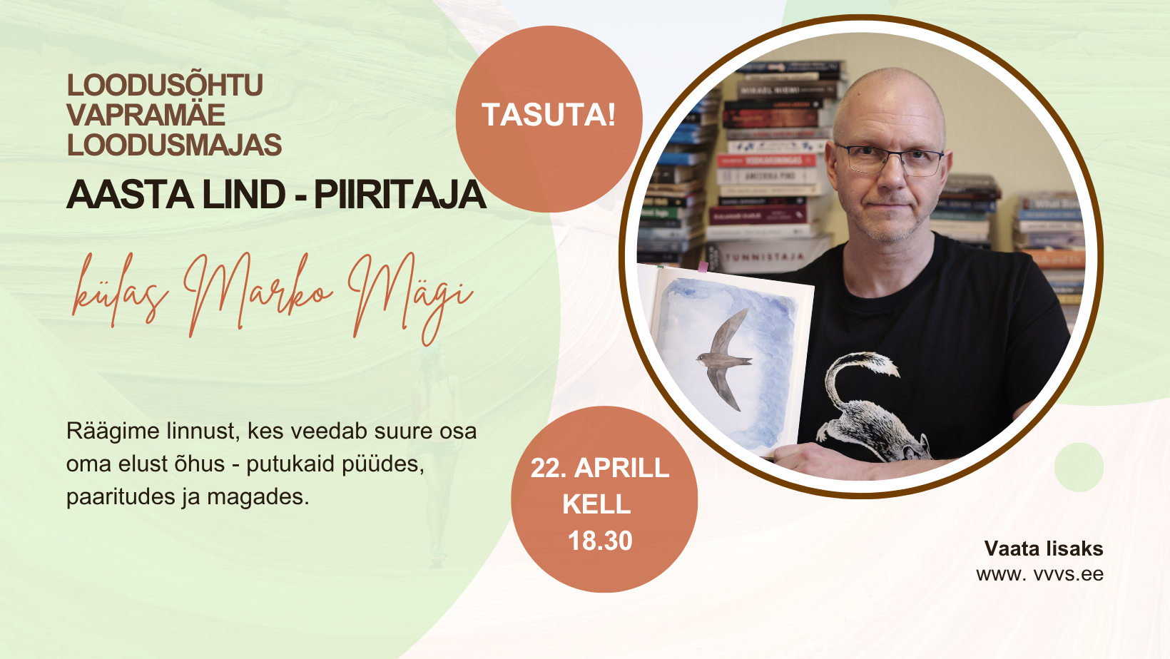 Loodusõhtu Aasta lind – piiritaja. Külas Marko Mägi 22. Aprill kell 18.30